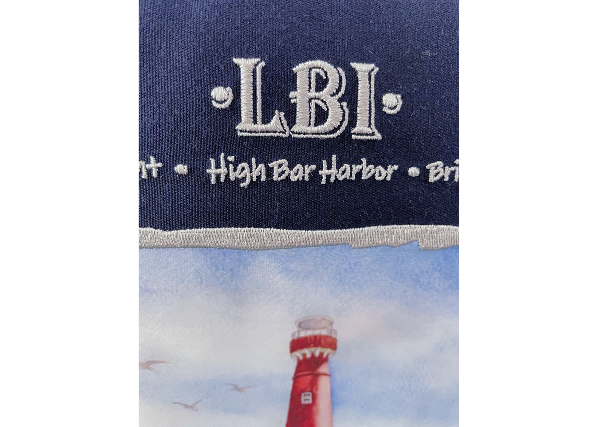 Beautifully handcrafted in the US, inspired by the artist's original painting of Old Barney. Each pillow is luxurious, as well as durable, designed for indoor/outdoor use. The outer sham is made from Sunbrella fabric, trimmed with nautical rope attached with webbed tabs, able to withstand the elements. The outdoor pillow insert is made of soft non-woven fill, removable for easy cleaning. Artwork is heat transferred, outlined with fine embroidered details, embellished with LBI script and town names. Free Shipping! Please allow up to 2-3 weeks to ship.