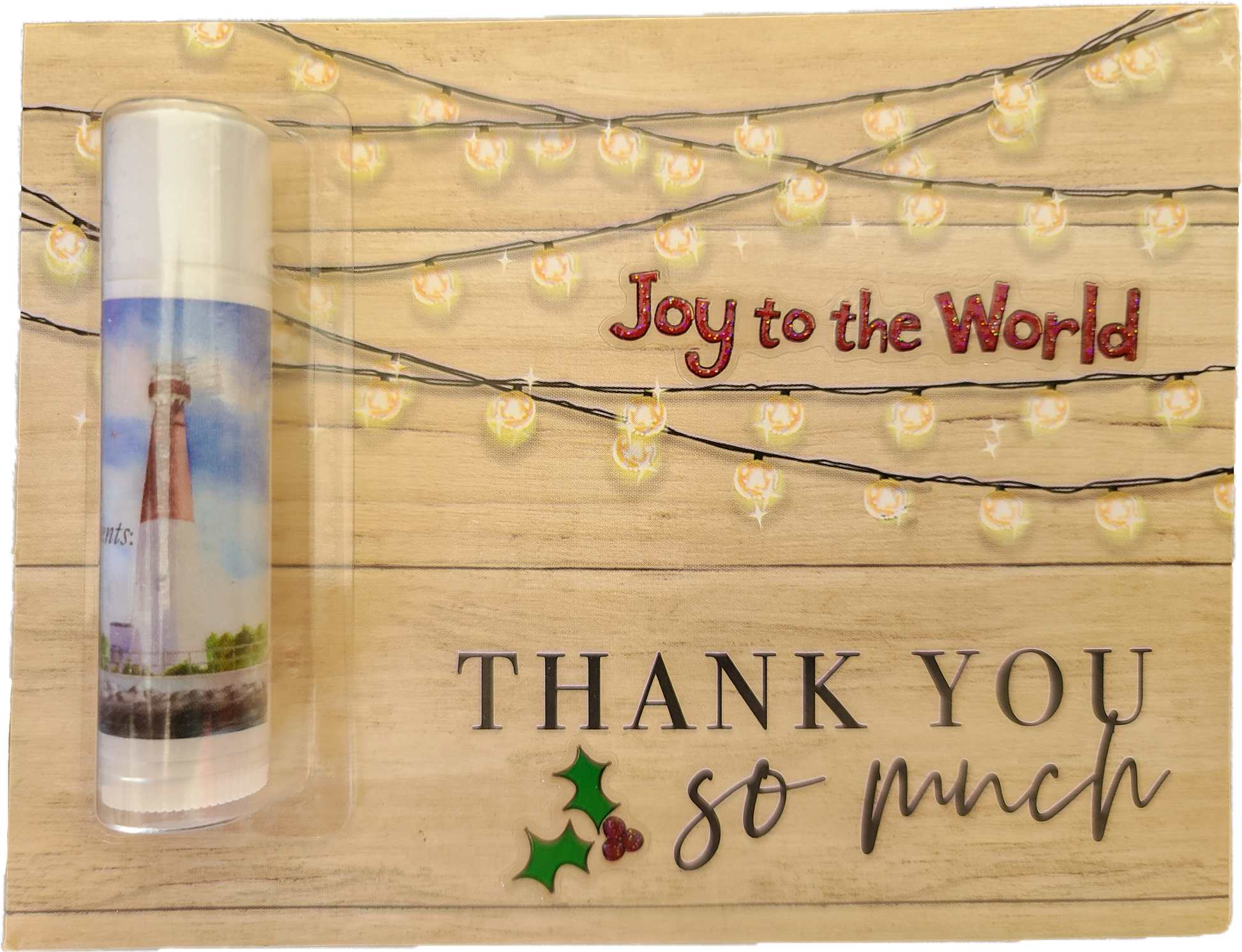 Say thank you in style or compliment a holiday gift this year for LBI lovers. The card measures 5.25"x 4" and comes with a coordinating envelope and Lip Balm. Each Lip Balm is hand-poured using all-natural ingredients. "Old Barney" adorns the label. Free shipping.
