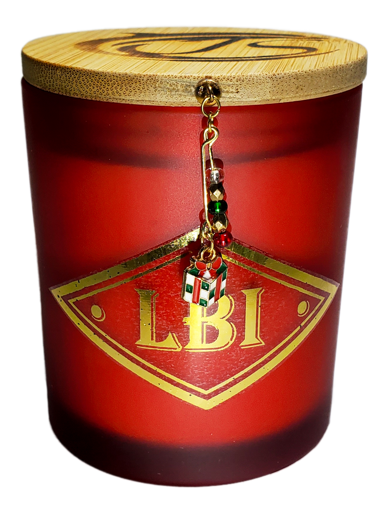 Each candle is hand poured and scented with Christmas Hearth oil. The frosted red jar is decorated with a gold metallic LBI label, topped with our logo branded bamboo lid and a unique one-of-a-kind handmade Holiday charm. Free Shipping! Please allow up to 2-3 weeks to ship.